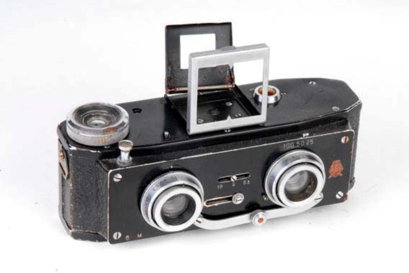 Stereocamera, developed by A.O. Gelgar, the author of the first SLR Sport, was made to use 35mm perforated film.