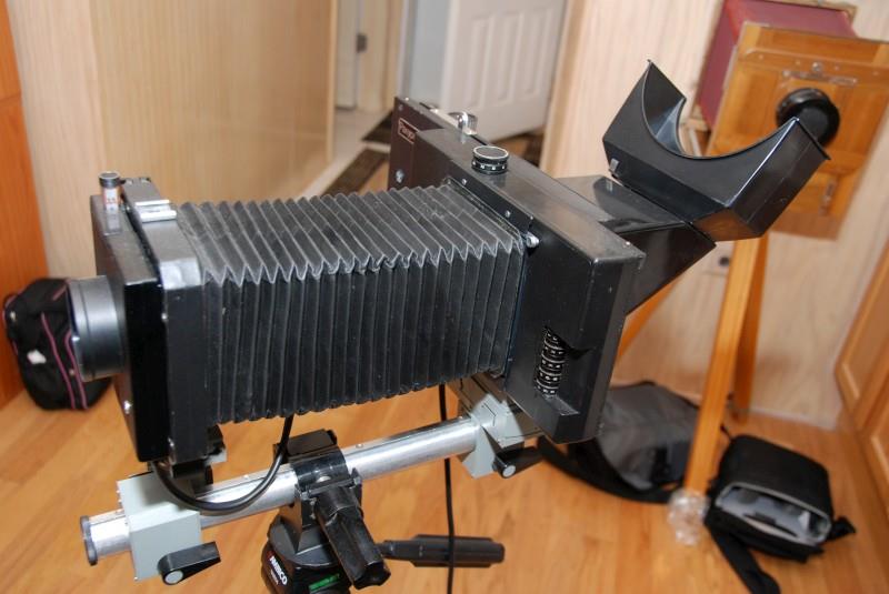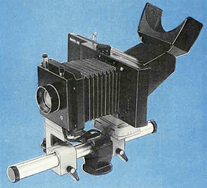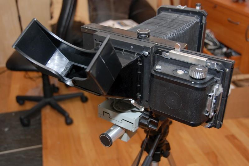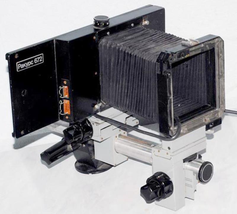 Produced: c.1985 Name: „Ракурс-672“ Producer: BeLomo Frame size: 4.5x6 cm; 56/72 mm.. Lens: Vega-23 3.5/150; Lens: Vega-24 4/210; Lens: Mir-41 5.6/90. Shutter: B, T; 4s – 1/60s.