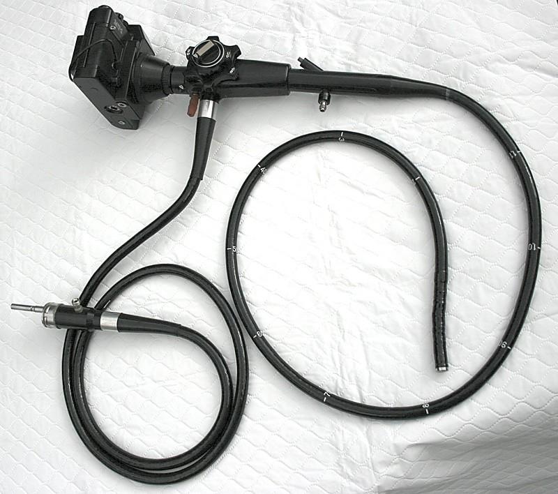 The 1st photo shows the MT-1 with the endoscope adapter fitted. Photo 5 shows the MT-11 endoscope fitted to the camera. The fibre optic cable below the camera is used to connect the light-source which illuminates the subject matter. The control in photo 6 is used to steer and position the endoscope.