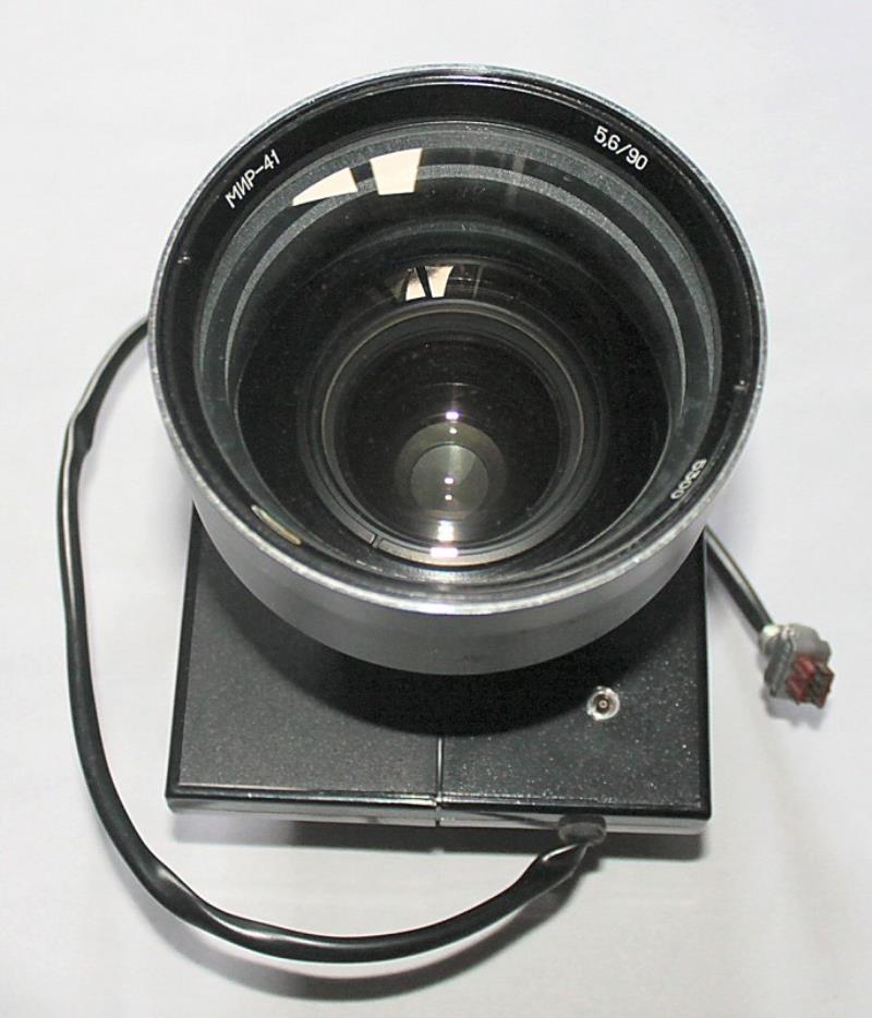 The Mir-41 lens was manufactured by MMZ for Rakurs cameras. The lens is mounted in an electronic shutter. The aperture range stops downs to f/22 and is controlled by the slider on the top of the shutter which can be raised or lowered.