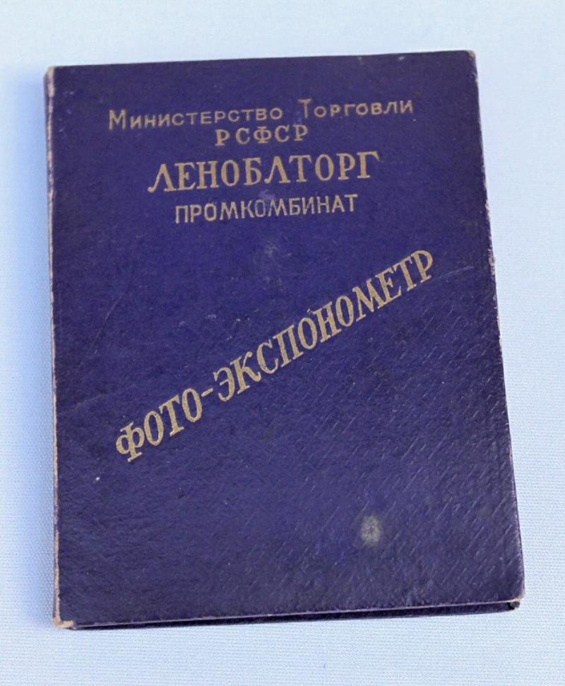 My brown one is from 1952 and cost 10 rubles originally. Front says "MINISTERSTVO TORGOVAI, RSFSR, LENOBLTORG PROMKOMBINAT, FOTO-JEKSPONOMETR". Rear says: "LENINGRAD, GOSTINYJ DVOR, VOM. 47"
