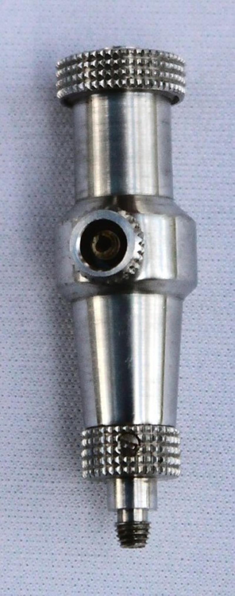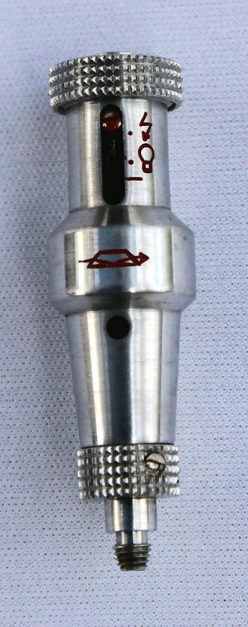 This flash synchroniser was manufactured by KMZ for Zorki and Zenit cameras without synchronisation. The synchroniser screws into the cable release socket and a cable release is screwed into the top of the synchroniser. The flash unit is plugged into the PC socket on the front of the synchroniser.