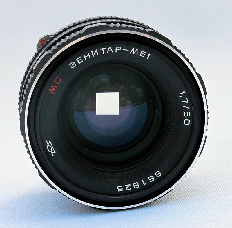 The Zenitar-ME1 is a fairly uncommon lens. It has a maximum aperture of f/1.7 and a focal length of 50mm. It was manufactured by KMZ in the 1980s and was the standard lens for the Zenith-18. It has a pre-set diaphragm and unususlly has a square aperture (last photo).