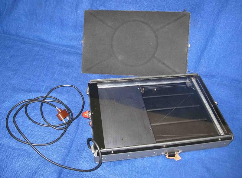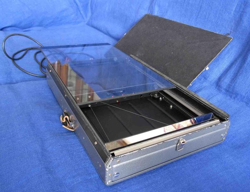 This is the old soviet microfilming device "Корица" (cinnamon). It was used in libraries and document archives to archive the old documents on 16mm film (takes less space and could be keeped for longer time).