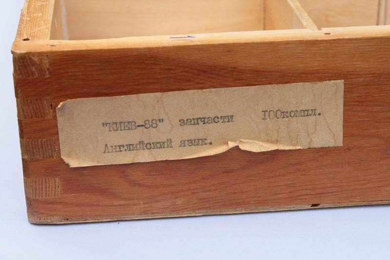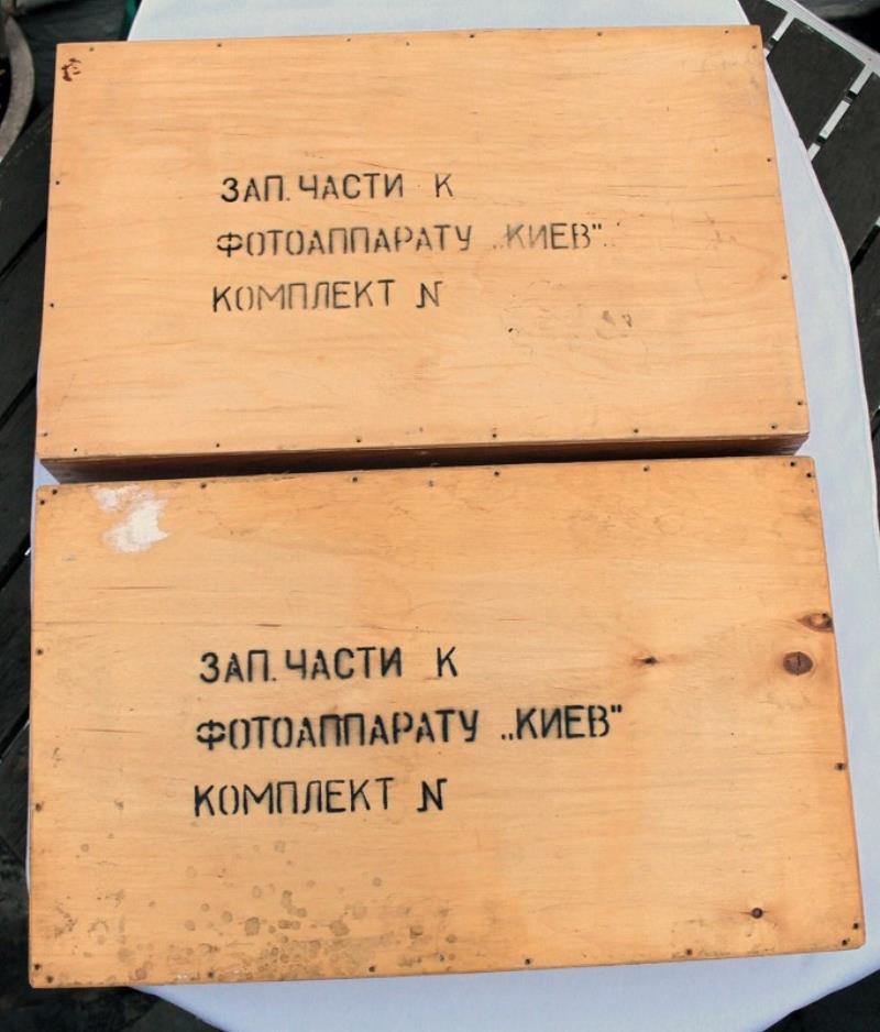 Kiev-88 spare parts kit, supplied in two large wooden boxes.