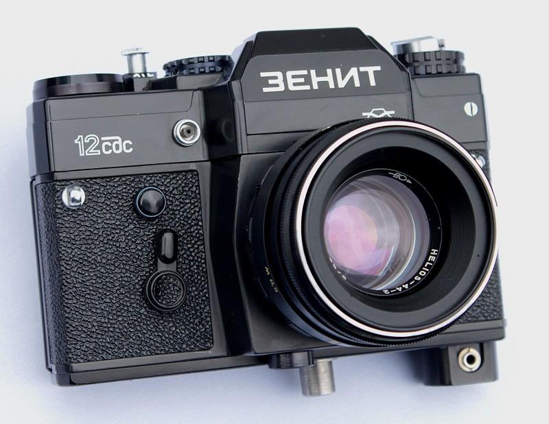 The Zenit-12sds is a Zenit-12sd that has been modified for use with the Zenit FS-12-2/3 photosniper outfits. It has a flattened pentaprism housing and plastic body of the later version of these cameras.