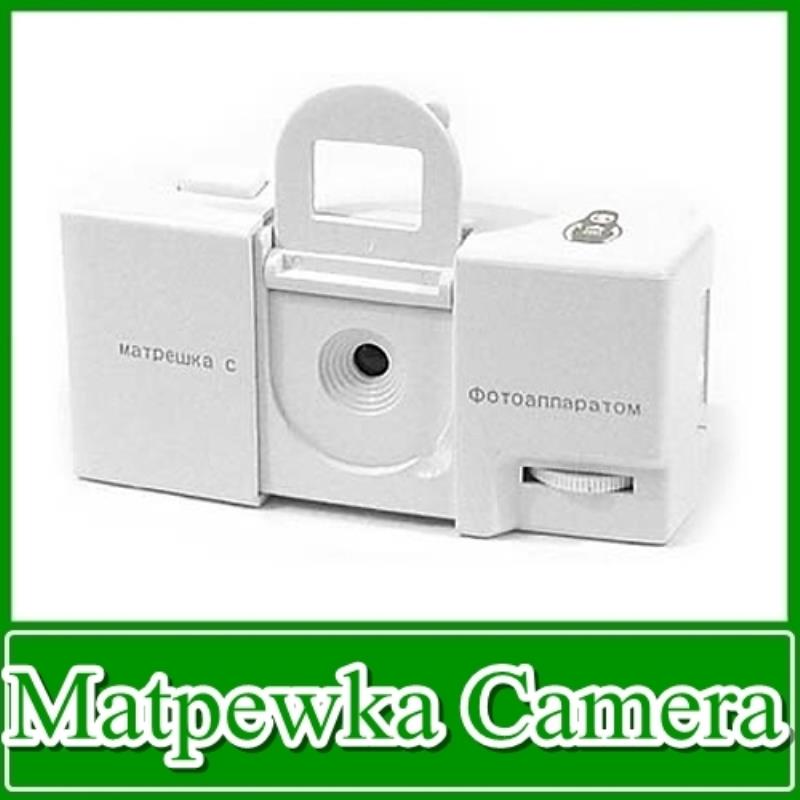 This is a Chinese made "Lomo" called Matroshka s Fotoapparatom ("Nesting Doll with a Camera"), takes 110 film.