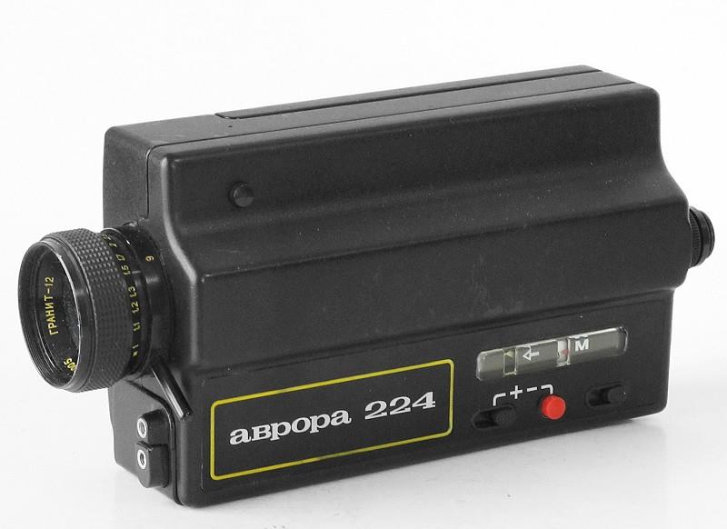 Prototype amateur cine camera Aurora-224, conceived by N.I.Panchenko. Very few experimental samples were released by LOMO in 1981.