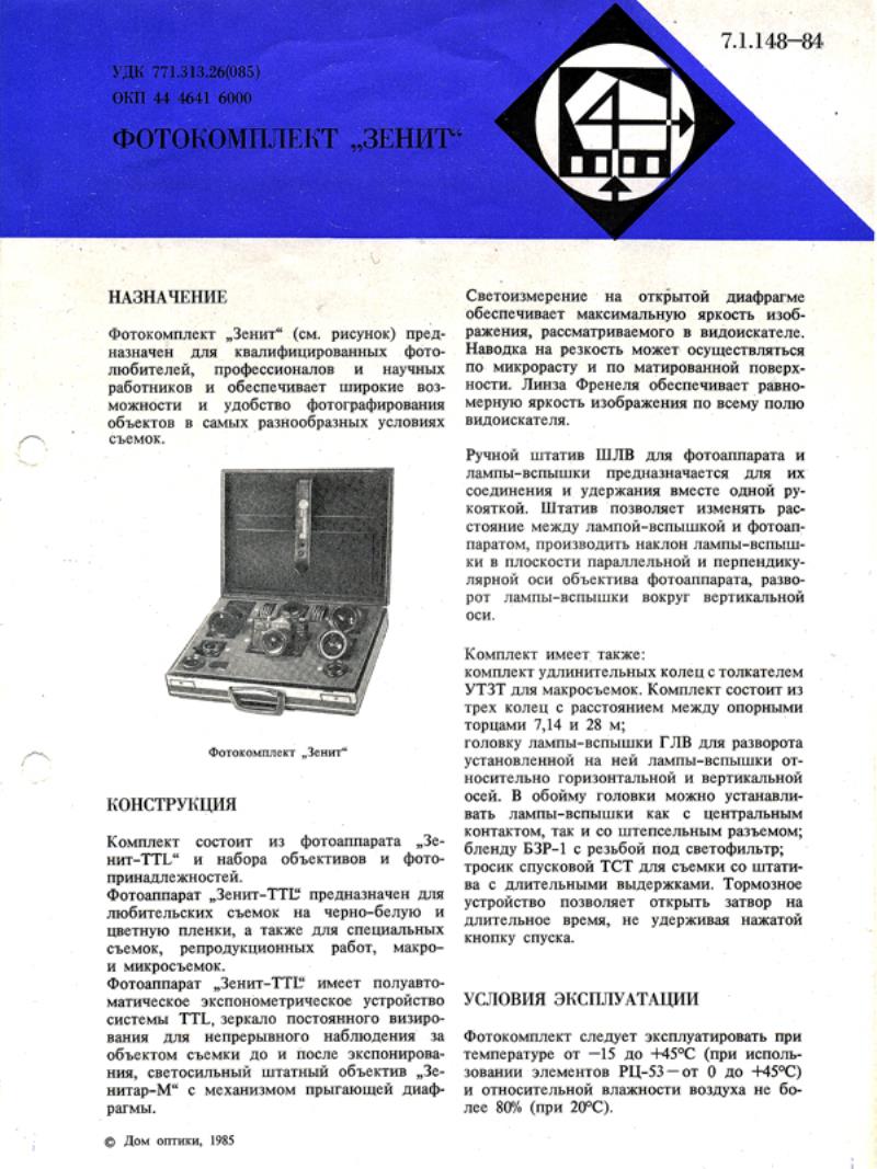 The instruction manual states that this kit had been made for qualified photo-amateurs, professionals and science workers.