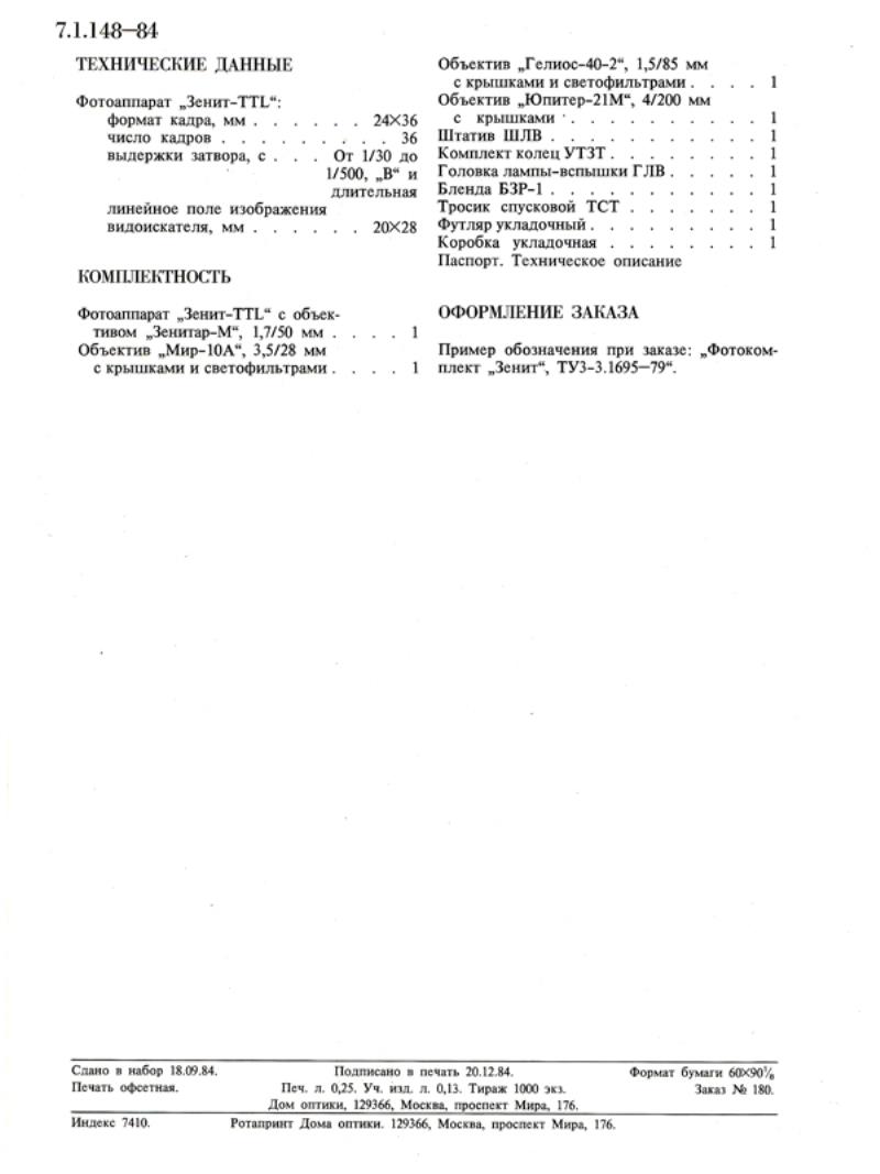 Zenit TTL Camera: