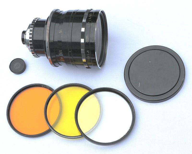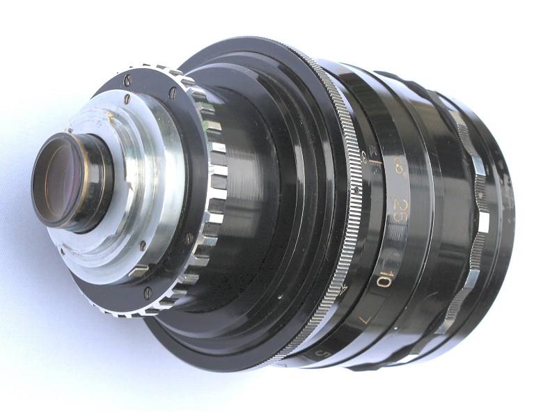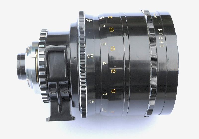 The Rubin-1 is a zoom lens based on the Zoomar formula. Maximum aperture is f/2.8 and it has a focal length range from 37mm to 80mm (slightly less than the Zoomar at 36mm to 82mm). The Rubin-1 has 14 elements in 11 groups. It is the standard lens supplied with the Zenit-6 camera. A second version of the lens, in photos 3 and 4 has an added tripod bush and strap lugs. This version was possibly made for the Zenit-5.