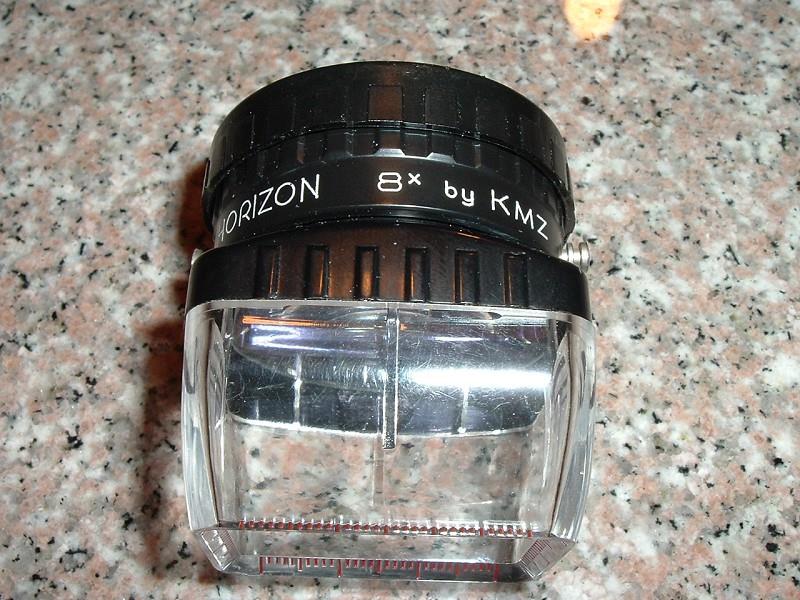 8x magnification, Made by KMZ presumably in 1990s. Lens called HORIZON same like famous KMZ panoramic camera, probably for marketing purposes.