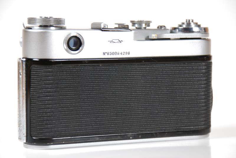 Camera identical to the Zorki-5, but with hinged back for easy film loading and self timer. As in the Zorki-5 a lot of the features on this camera were incorporated into the Zenit SLR.