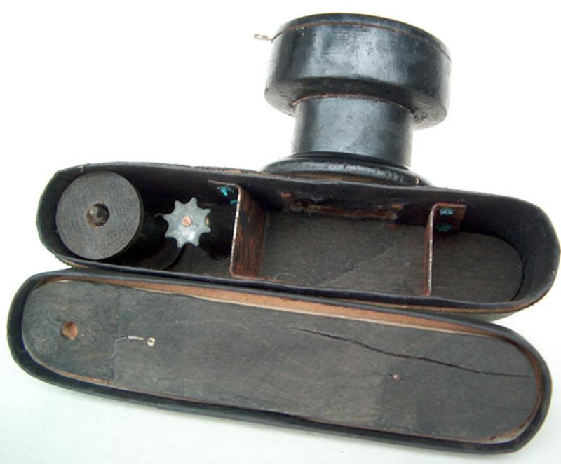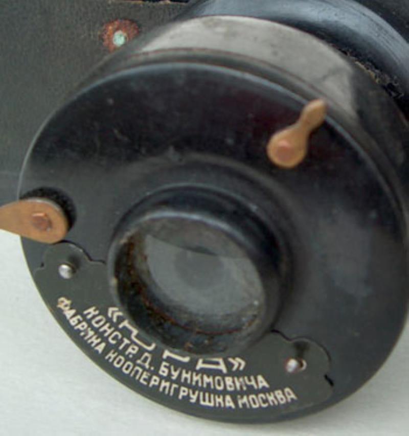 Small format camera with wooden body. Designed by D.Z.Bunimovich.