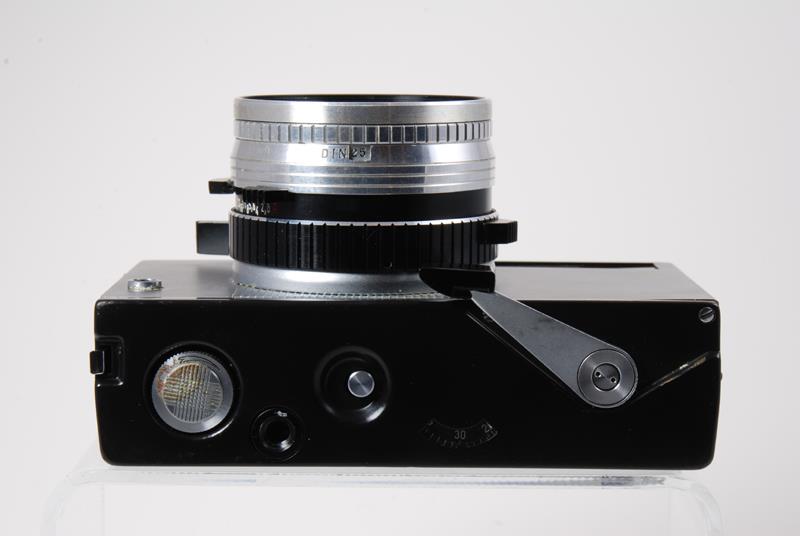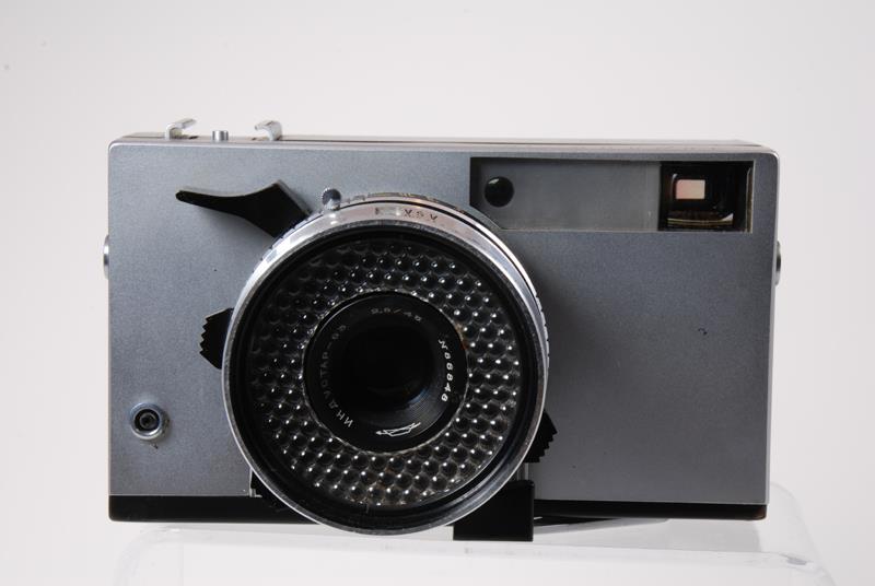 This camera has fully automatic exposure settings and is designed for using the 35-mm perforated film having 24x36 mm picture sizes. The camera is fitted with an "Industar-63" lens, which is built-in in the between the lens diaphragm shutter. The camera is loaded with standard cassette for 36 frames. M52x0.75 thread on the lens is provided for mounting filters. This camera was awarded the gold medal at the 1965 Leipzig World Fair .