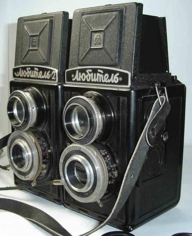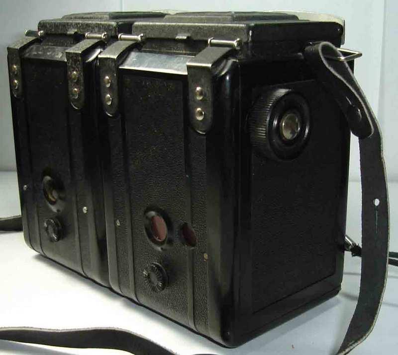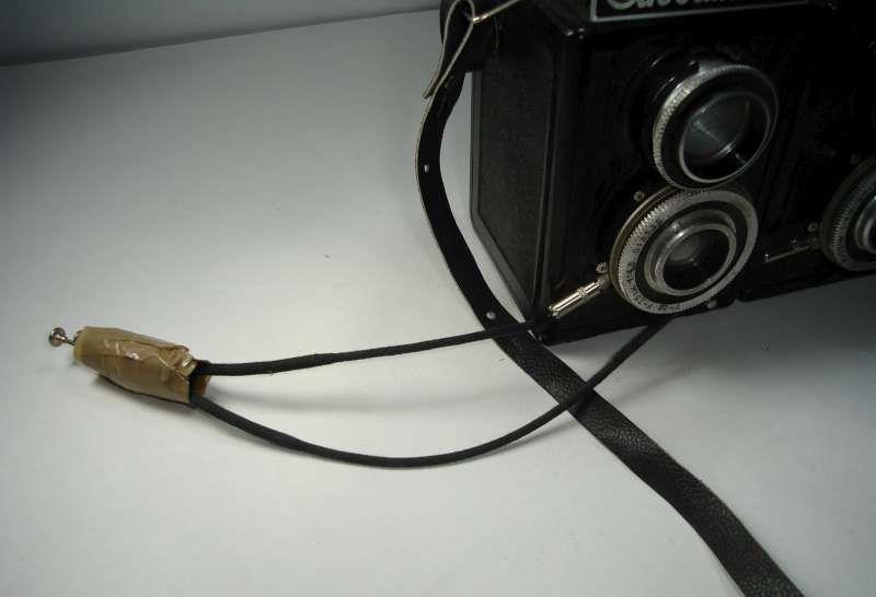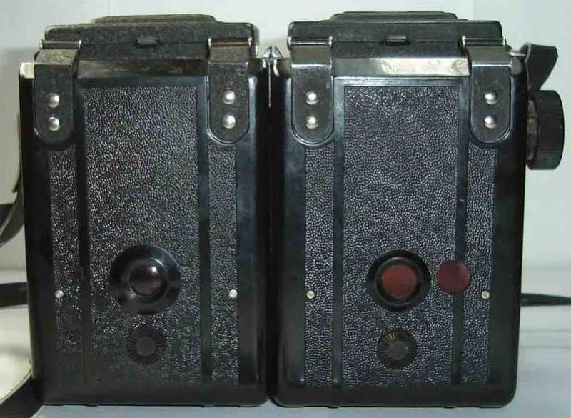 This is quite an interesting unit, definately homemade, no question about it. Seems to be Lubitel and Lubitel 2 strung together, having connected film advance mechanism. That is pretty much the only thing that is connected on these 2 units. The focusing is uncoupled and the shutter release is accomplished via 2 cable releases taped together.