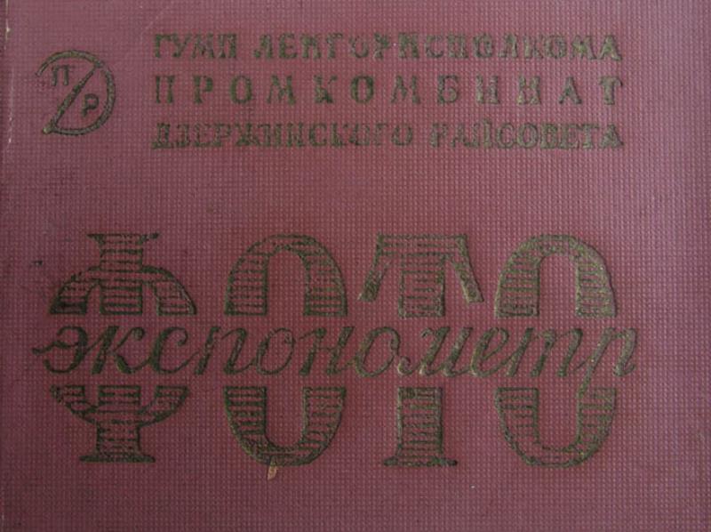 This type of guide was used by photographers before selenium light meters became widely available. It measures just 9.5 x 11 x 1 cm. and dates from the late 1920s or 1930s. The impressed, gold-printed cardboard cover has a "PDR" logo and reads "GUMP LENGORISPOLKOMA PROMKOMBINAT DZERZHINSKY RAISOVET" (loosely: "Main Controller Agency of Metal Industry of Leningrad Executive Committee - Industrial Combine of Dzerzhinsky Regional Advisory").