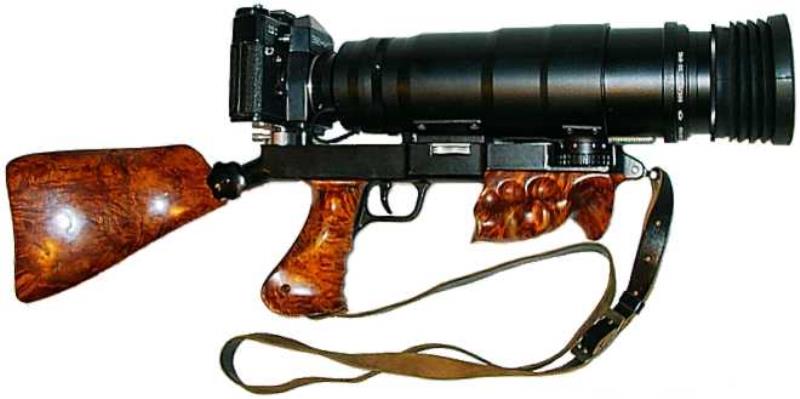 An FS-12 Fotosnaiper with very well done ergonomic wooden rifle stock.