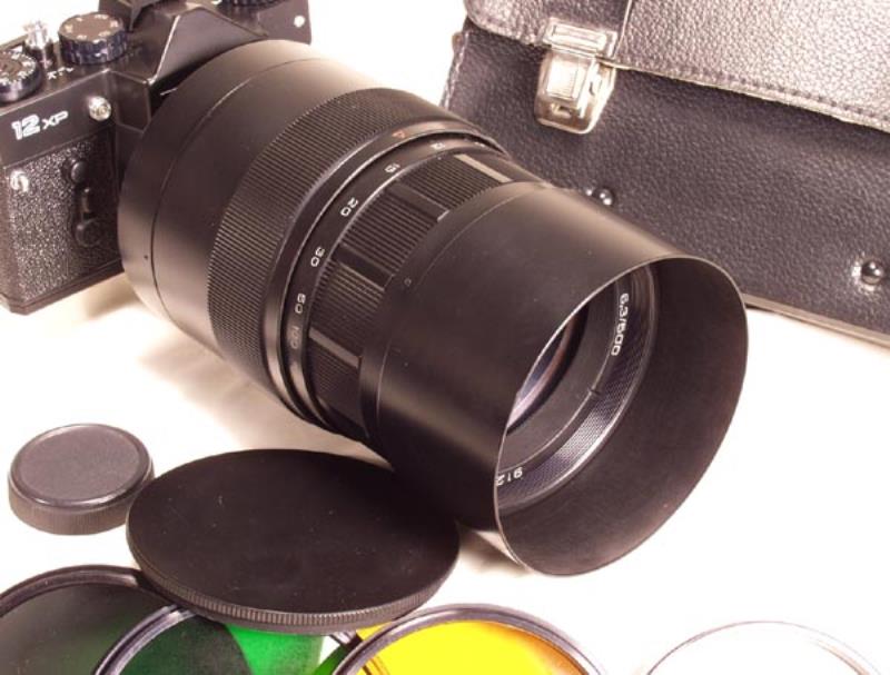 The Russian ZM-6A is a classic sample of Soviet-era engineering and workmanship. It is a 500 mm telephoto mirror lens based on the design of a known Soviet engineer Maksutov. This lens succeded the original MTO-500 lens, which was a heavy, brass unit. "MTO" stands for "Maksutov's Tele Ob'ektiv". ZM stands for Zerkal'nyi (Mirror) Maksutov's. The ZM-6A was much improved, it is a faster lens (1:6.3 vs. 1:8 in the MTO-500). It is also lighter, multicoated, and has a built-in sliding lens hood.