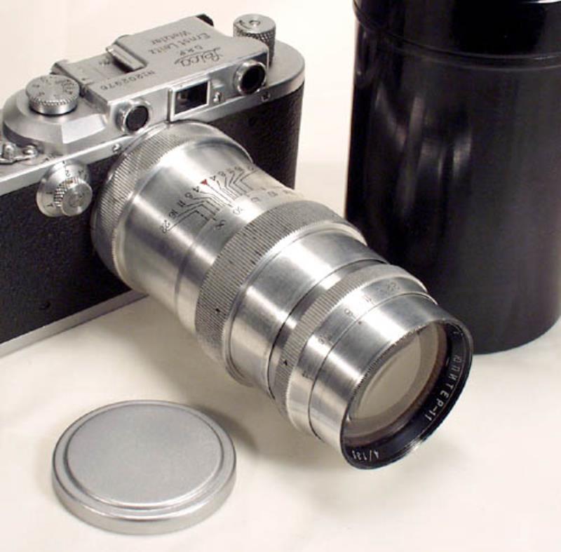 The Russian Jupiter-11 is a high quality telephoto lens. It was made in many different mounts - some are well-known (Leica, Contax), some are original Soviet designs (Zenit-4, Kiev-10 etc.). It is an optical copy of the prewar Zeiss Sonnar 135/4.