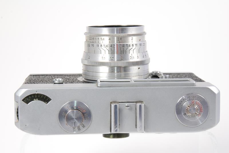The Drug is very well made, the body is cast and rigid, the finish is much better than on other Soviet cameras of the same vintage. The viewfinder window (combined with a short-based but very accurate rangefinder) has two brightline frames - for 50mm and for 85mm.