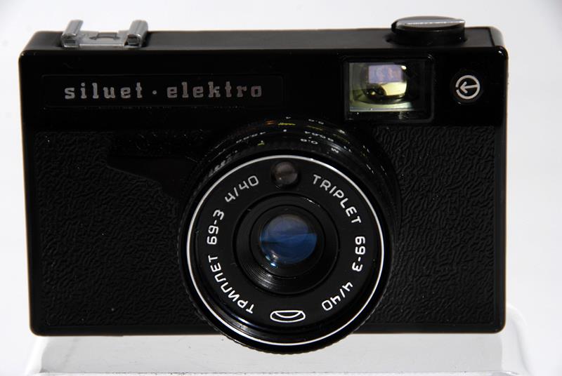 The successor of Vilia-Auto camera. Initially introduced in early seventies as Vilia Elektro. Allthough in appearance similar to its predecessor, the Elektro has a cds cell and more speeds. It even looks a little better. Siluet-Elektro has an aperture priority program (like the Lomo and the Zenit-Automat).