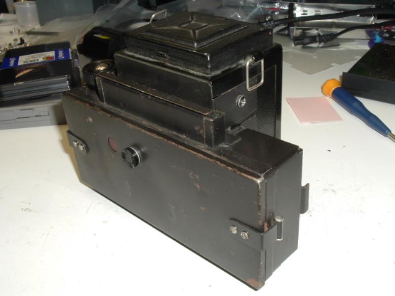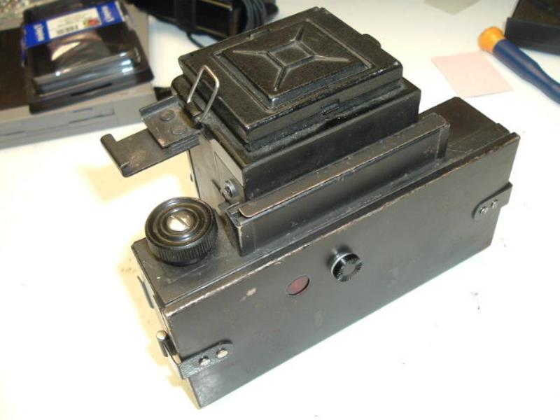 Modification of Lubitel (or Lubitel 2) to have 6x9 negatives. Most likely made to fit some scientific equipment. Attachment made from still, using heavy industrial machinery with pretty good quality(not home made). Then attachment fitted to camera by hands using sander. Most likely this camera has light leaks and probably was used with low sensitive materials.