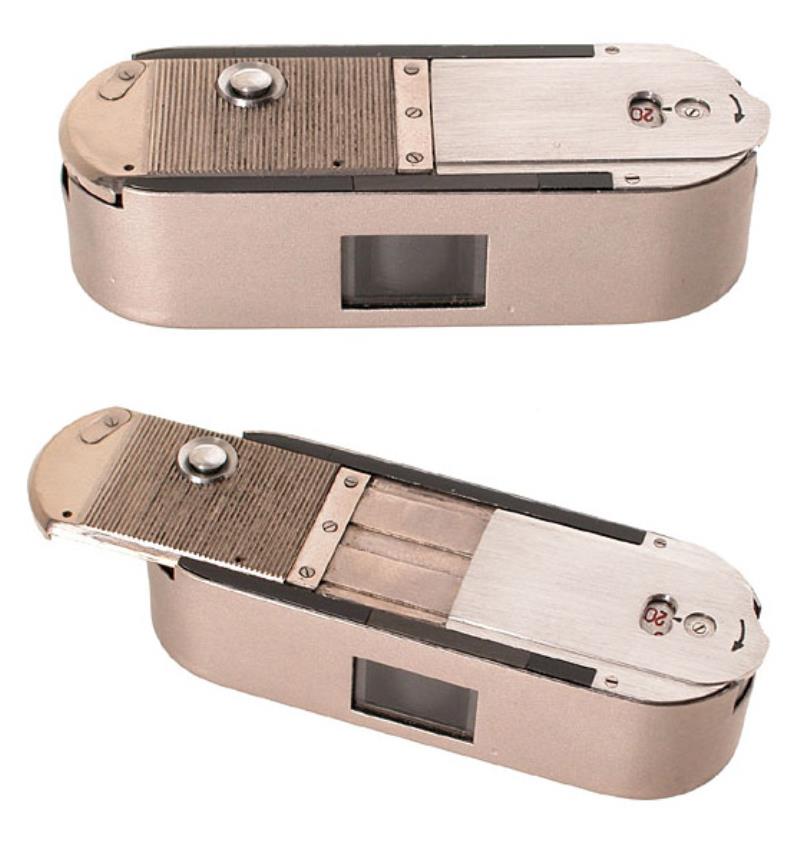 On April, 1954 was delivered at GOI in Leningrad a liliput lens called Helios-57 9mm f/3,5, whose weight was a mere 1,5gr but at the same time it showed a sophisticated 6 elements Gauss formula plus a plate glass, able to clutch-out some 85 lines per mm! This jewel of miniaturization was fitted on some micro-spy cameras reportedly used by KGB; one of the most interesting and cute among them is a true panoramic camera with a spring-driven tilting lens (the same Helios-57) fitted into a 12mm diameter drum: a true masterpiece milled from solid aluminum and able to cover 80° on the diagonal of the well-known 8x11mm Minox format; only three exemplars are know to exist and the acution prices boost to very high rate. Compare camera size with Vega film cassete case. One will see the camera miniaturization.Courtesy Mario Cavina: http://www.luciolepri.it/lc2/marcocavina/articoli_fotografici/Helios_57_micropanoramic_camera/00_pag.htm Image cridits:Westlicht Photographica Auction