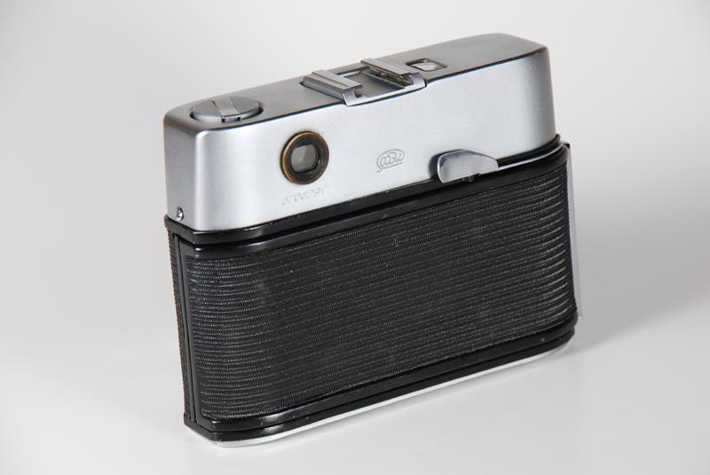 This camera is a follow on to the FED-10. The film speed setting has been moved to the lens mount and there is a rewind crank on this model. It appears that a series of interchangeable lenses was intended for this model as the lens is removable, however no other lenses are known. Interestingly the manual also says to never remove the lens. This camera is covered with nylon cloth.