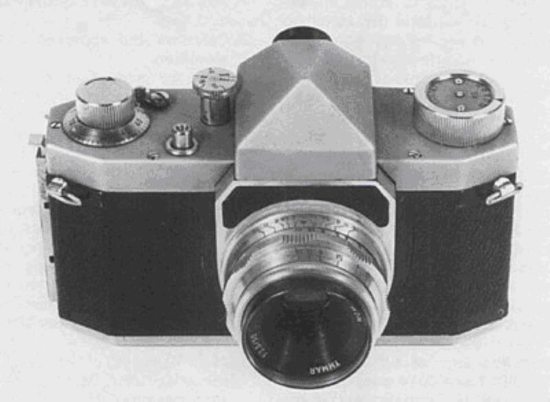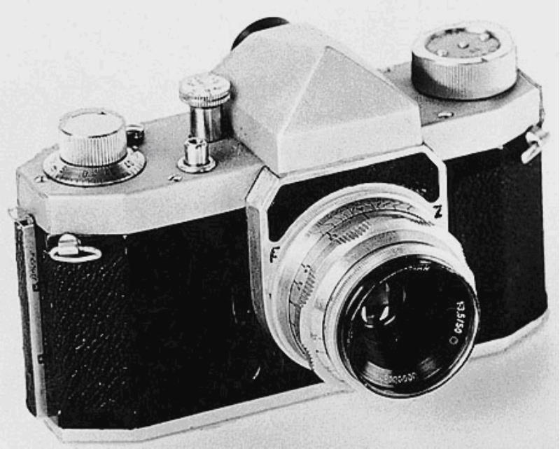 This very interesting camera Was developed in Hungary around 1956/1958 , by MOM - Magyar Optikai Müvek . It is a direct descendant of the original Zenit camera ,. Uses Standard M42x1 threaded lenses pro-set types and has fixed pentaprism . Speeds 1/30 to 1/500 +B. in focal plane shutter .Knob film advance.