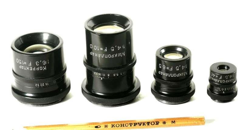 The Soviet production comprised also super-macro objectives similar to the Zeiss Luminar series This set is made by LOMO.
