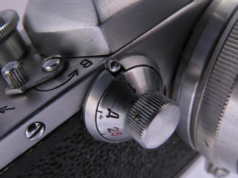 Zorki 3 preseries differed from regular production run Zorki 3 by having a small lock on a slow shutter speed dial. From collection of Steven Berkowitz