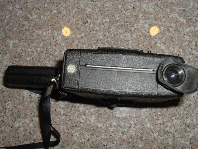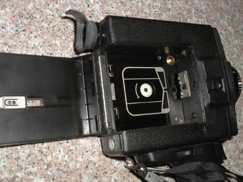 Very simple and easy to use automatic cine camera. It has fixed focus Lens T-55 F12mm, 1:2.4. It used 4 AA batteries. 8mm film loaded on cassettes type Super 8M. Automat with aperture priority. Camera has built in correction filter for incandescent lamps. Manuals are written in German.