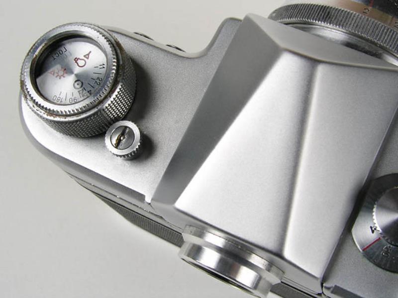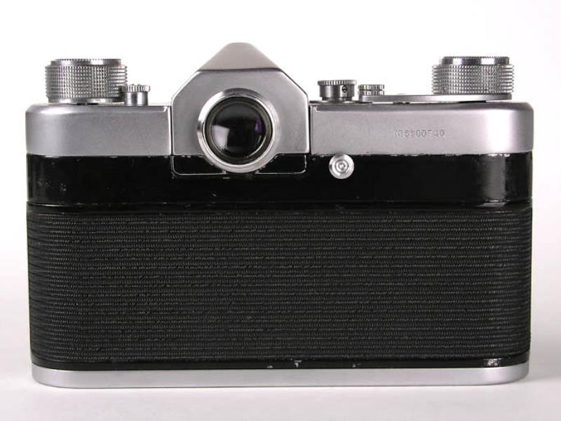 Notes: Interchangeable pentaprism & waist-level viewfinders; split image focusing screen; self timer; integral film cutter; speeds 1 - 1/1000 sec.; bayonet mounted interchangeable lens (no other lenses produced to fit!).