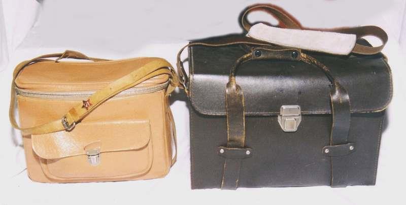 Two USSR camera & equipment bags, both real leather. The big "professional use" bag was also made in leatherette, almost paperlike surface, and was propably not rare as I have seen several. Otherwise big cases like these we not common in USSR.