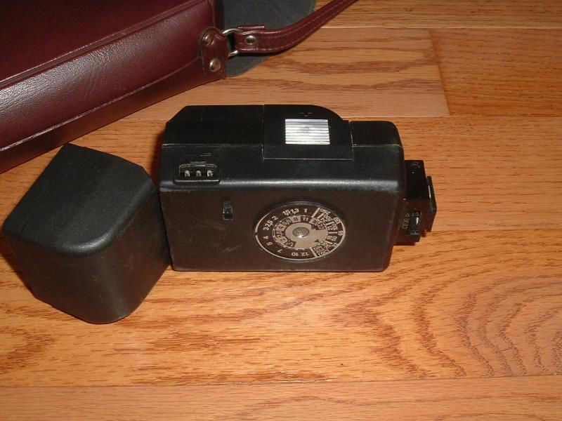 Flash made in Lithuania, tilting and bouncing head, uses rechargeable accu or 4x AA-cells in adapter