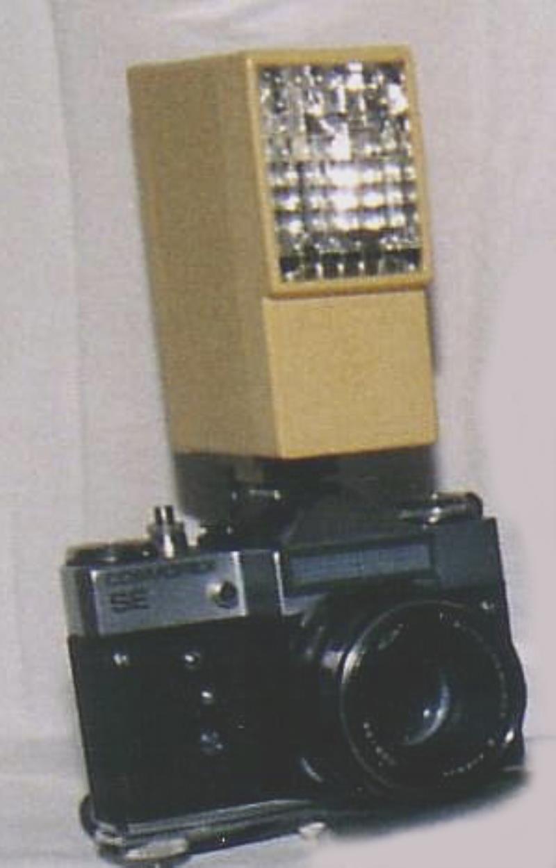 Operated on mains or 6x AA-cells, cable contact and hot shoe, 100% or 50% power, made in 1995, cost 35 rubles