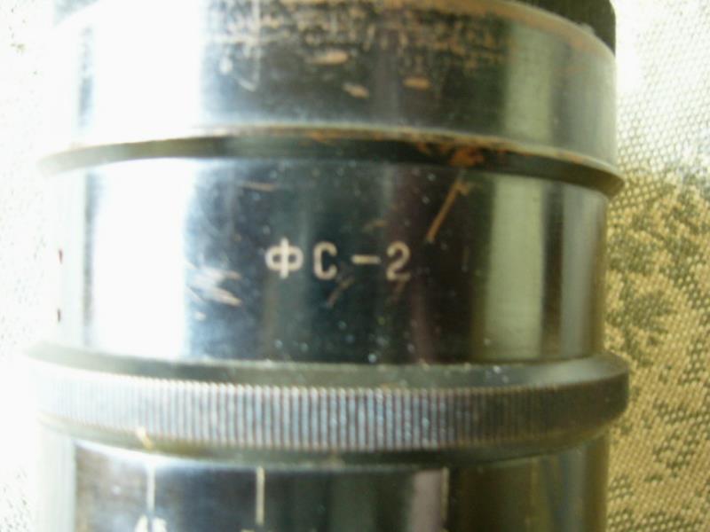 This objective has been developed in 1945 by the State Optical Institute (ГОИ) in Leningrad for the Photosniper FS-2 based on camera FED. This manufacture had no further development. When SLR cameras were in high demand in the 50’s years,there was a need for aditional objectives for them. Most of old objectives, were altered for use on SLR. This shown objective was made by the Kazan Optiko-Mechanical Factory in 1959. The objective has a M39x1 mount and a register of 45.2 mm for the Zenit cameras of the era. This lens belongs to a pilot production, for future serial production. Unusual and extremely rare objective.