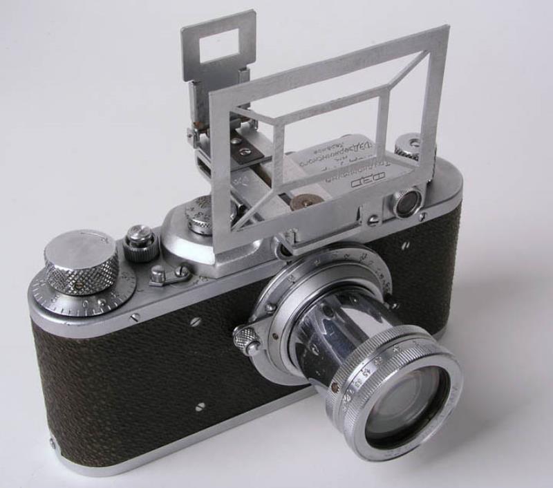 A chromed aluminum and metal frame "Sports Finder" developed along with the other new accessories for the FED-1 circa 1938. This was the period that the 28mm, 100mm, 50mm Macro, FED Lightmeter, FED Self timer, FED-1S with 50mm f 2.0 lens, and a few other accessories were released to increase the versatility of the FED.