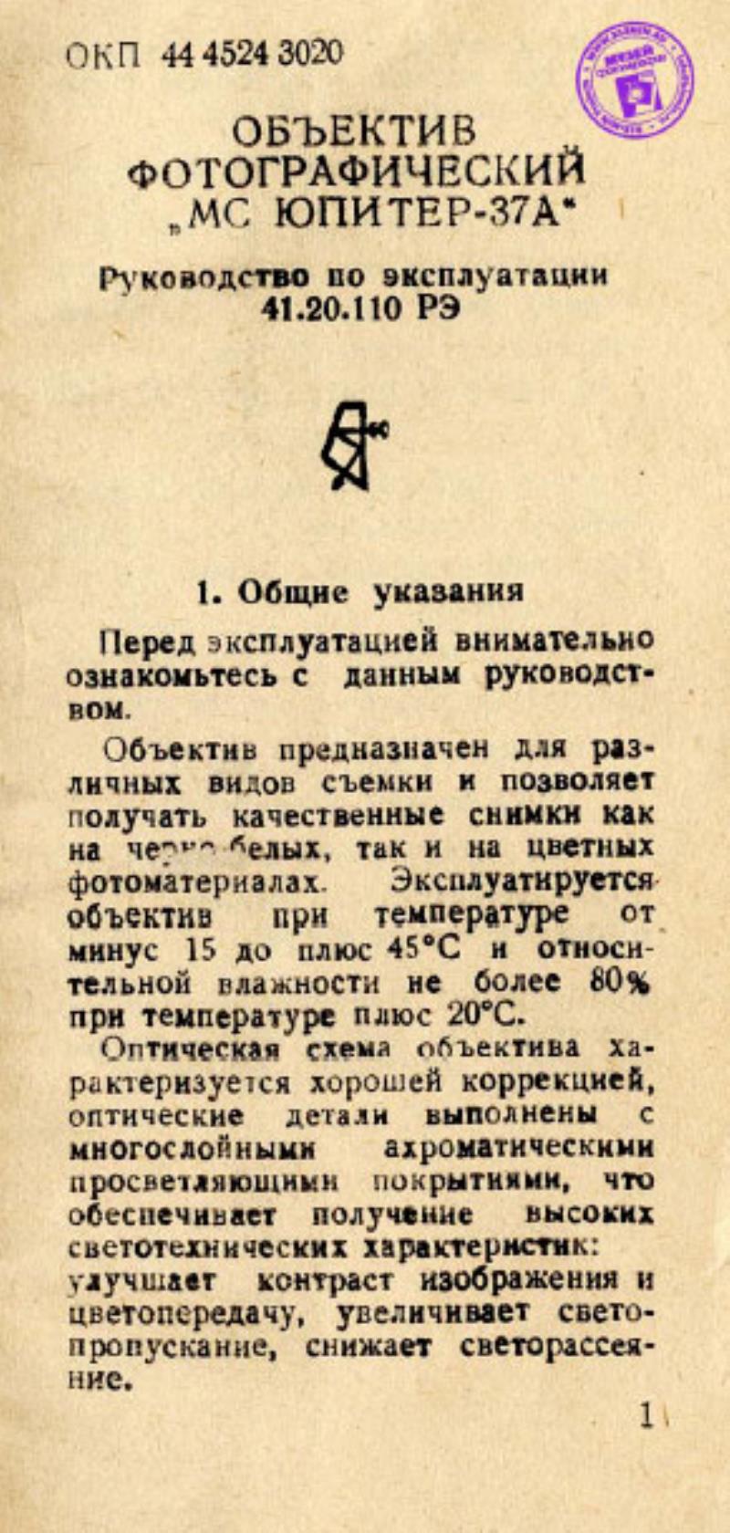 > MC Jupiter 37A Lens Manual (Russian)