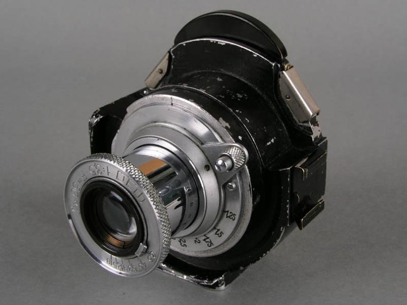 This appears to be a home-made or factory prototype camera. It takes a single 35mm film frame. Supposedly a copy of Leica OneShot.