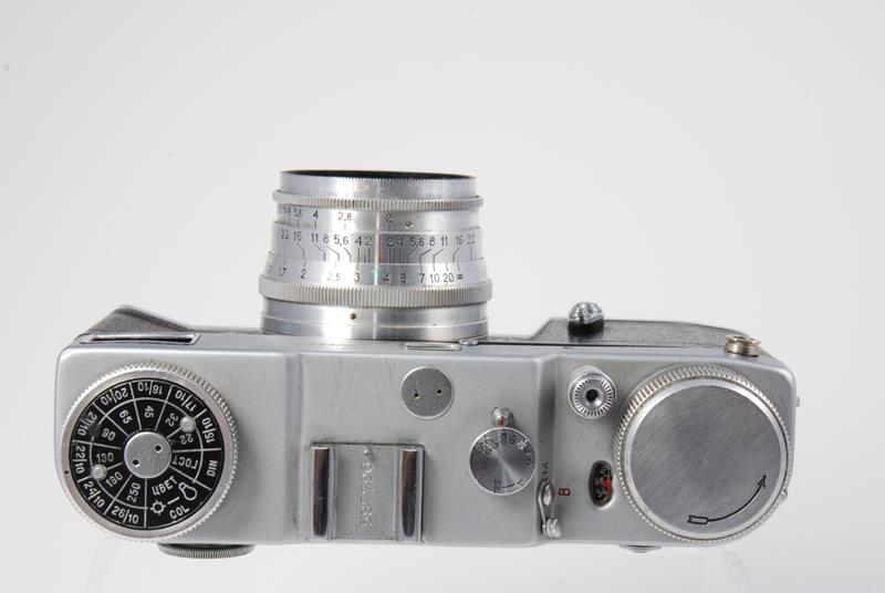 This camera was one of few completely original developments of Soviet photographic industry. And it actually proved to be “window into Europe”, after earning the highest reward - Grand-Prix - on the world exhibition 1958 g. in Brussels. About these 71 thousand cameras were released in twelve years from 1956 through 1968 g., by Leningrad plant [GOMZ]. It was planned as the camera of professional level, “which on its outstanding technical specifications, design device, finishing and formulation can satisfy each, who acquired it.
