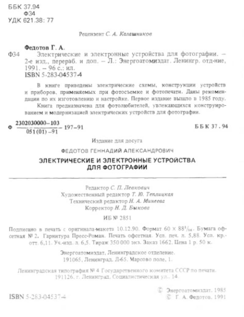 G I Fedotov - Electric and Electronic Devices for Photography Book (Full Download)