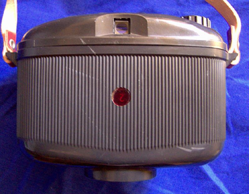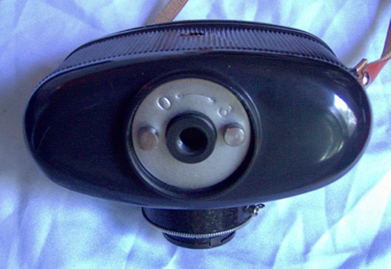 This second variant of the Skolnik has a chrome ring around shutter and lens and has a fixed shutter speed of 1/125 instead of 1/60th on the earlier all black version.