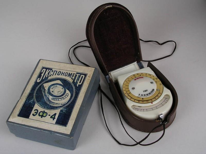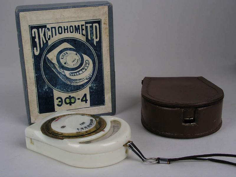 The Kiev EF-4 selenium cell exposure meter is made of plastic and is a bit lighter and of a lesser quality than the earlier Kiev EF-2 meter, however it works well and is accurate.