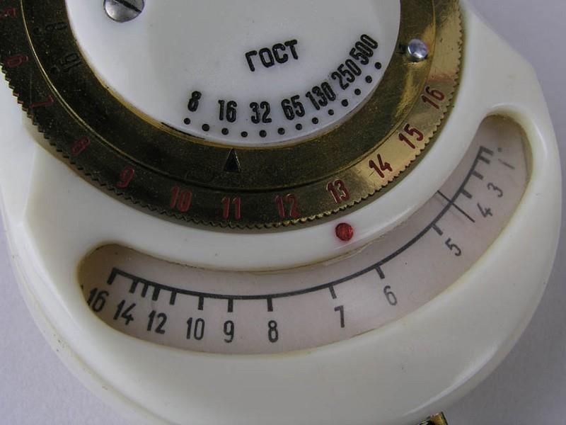 Probably made in the 1960s, it comes with a fitted leather case and translucent white plastic incident covering lid for the front of the meter. Made for use with Kiev rangefinder cameras that did not have a meter built in.