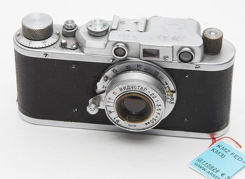- lens Industar 22 Moskva s/n 4293- leatherette "paper" looking covering- very thin and bad chrome- "FED" engraved and insert plate in back Images 1 and 2 : A.&C. BERRY collection Images 3, 4 and 5 courtesy of www.arsenal-photo.com