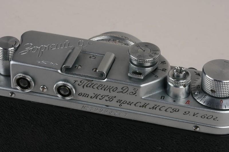 And also, the top place has a corrected mistake in the inscription. It looks like at first the plate was planned to be put on Zorki C camera, and then the inscription was corrected to "2C". The camera is a Zorki-2C since it has a 1/30 synch speed.