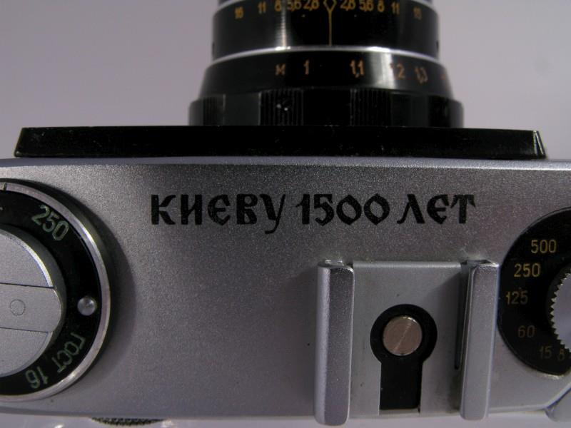 FED 5B Camera with engraving in Russian that says "Kiev is 1500 years old"