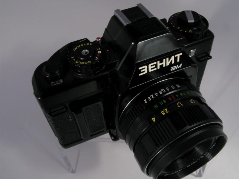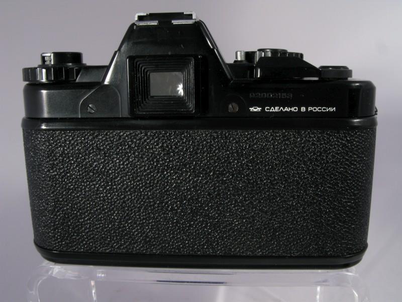 This camera appears to be a less expensive variation of the Zenit Automat. It has an electronically timed metal fan type vertically traveling shutter. It also has a few cosmetic changes and the lower flash jack has been changed into a power jack to allow operation from a remote battery box in extremely cold weather. The camera does not have the built in viewfinder shutter. This camera will not operate without four PX625 or equivalent batteries [2].